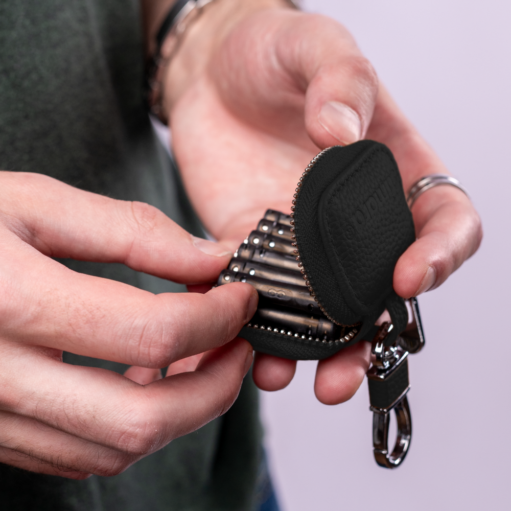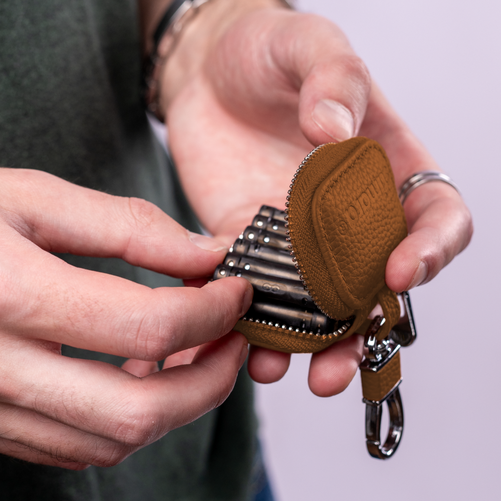 Our Premium Leather Keychain Case is designed to keep your Stimagz with you everywhere you go - protected, easy to grab, and looking ridiculously put-together in the process.